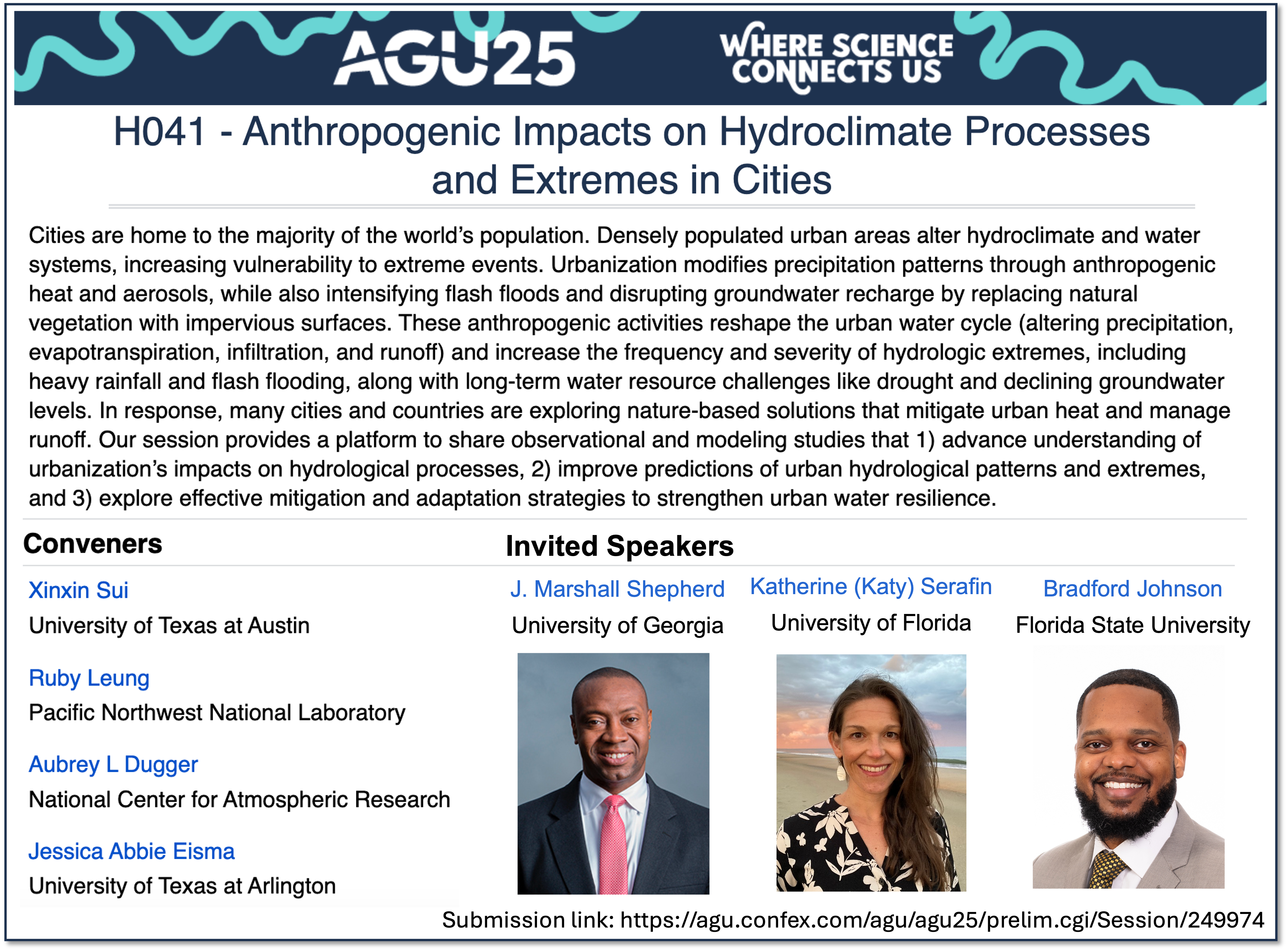I'm convening two sessions at the upcoming AGU Fall Meeting 2025 in New Orleans! If you're interested in urban hydroclimate research, we warmly welcome you to join us and submit your abstracts. Read more